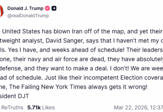 ΟικονομίαΤραμπ: «Έχουμε διαλύσει το Ιράν, θέλουν να κάνουν συμφωνία, εγώ δεν θέλω» – Στο τραπέζι σενάρια διαπραγματεύσεωνΣε διαδοχικές αναρτήσεις στο Truth Social, ο πρόεδρος των ΗΠΑ Ντόναλντ Τραμπ υποστήριξε ότι οι...
